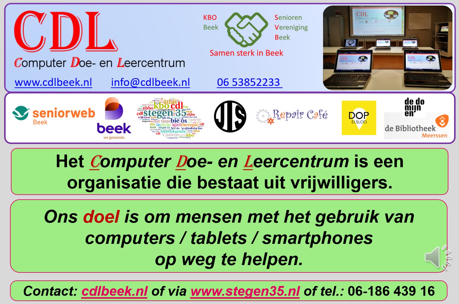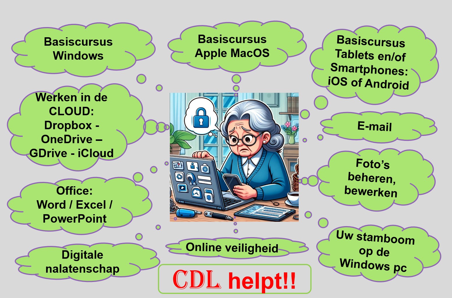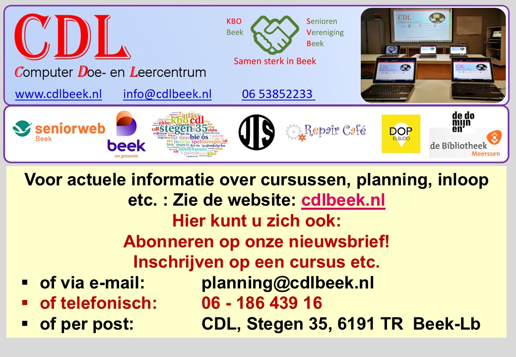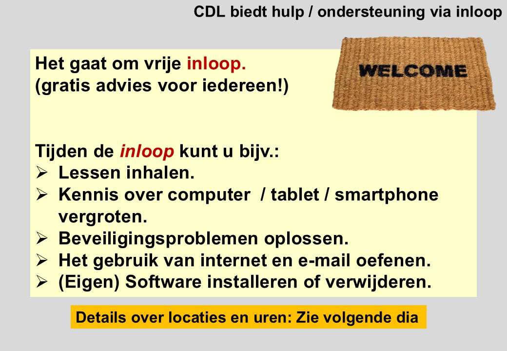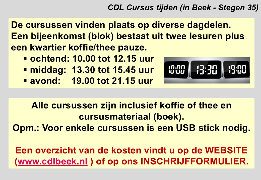 Home » Cursussen bij het CDL Cursussen bij het CDL Klik op een dia om te vergroten (pop-up schermpje). Gebruik pijltoetsen om te bladeren.